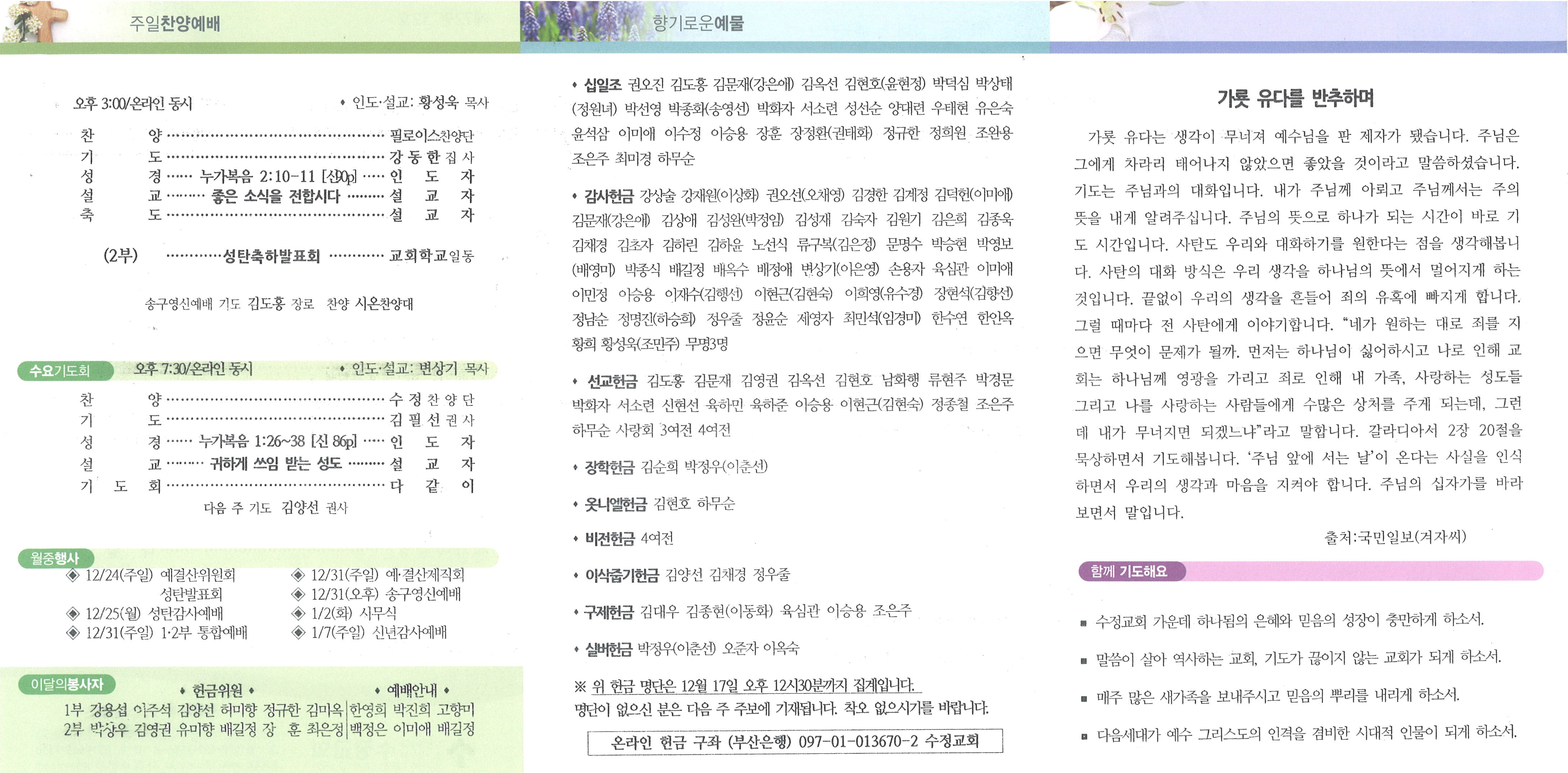 지역과 함께 성장하는 교회, 수정교회 소식을 확인할 수 있습니다.